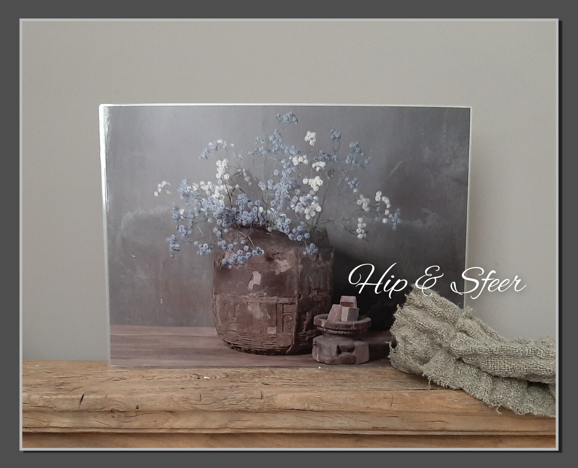 Placemat met een prachtige afbeelding van blauw en wit gipskruid in een leemmand. Dit placemat is gelamineerd en heeft een afmeting van 30x45cm.