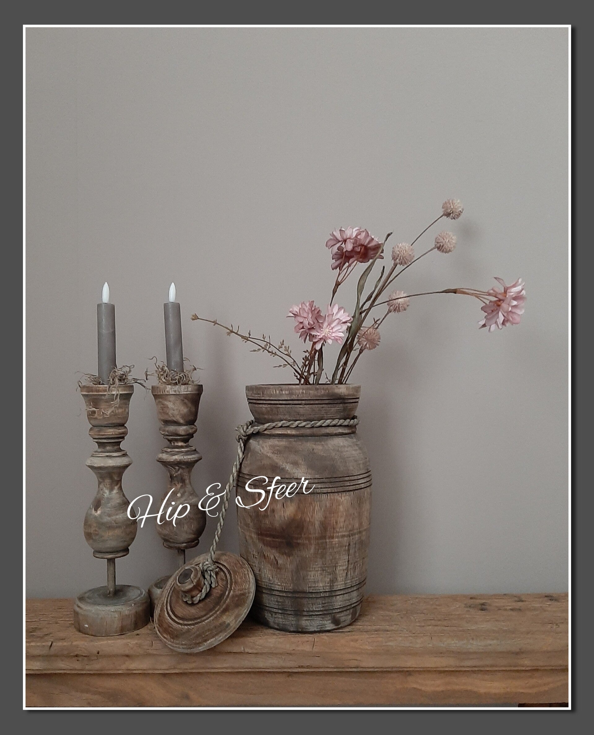 Houten kaarsenstandaard met tussenstuk middel