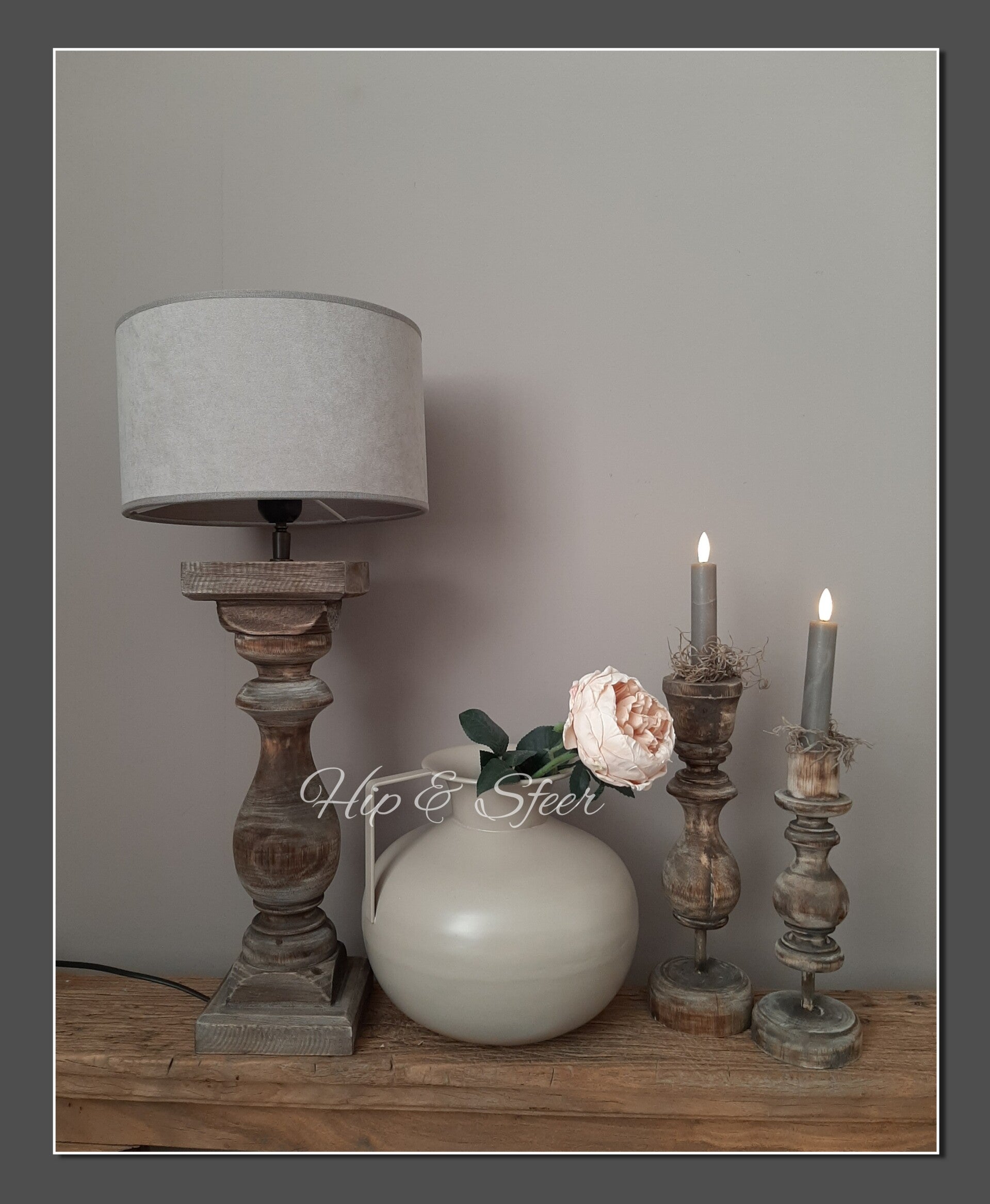 Mooie houten baluster lampenvoet in een mooie matte bruin tint waar de houtstructuur nog doorheen te zien is.de afmeting is 40cm hoog zonder fitting gemeten en de voet is 13x13cm.