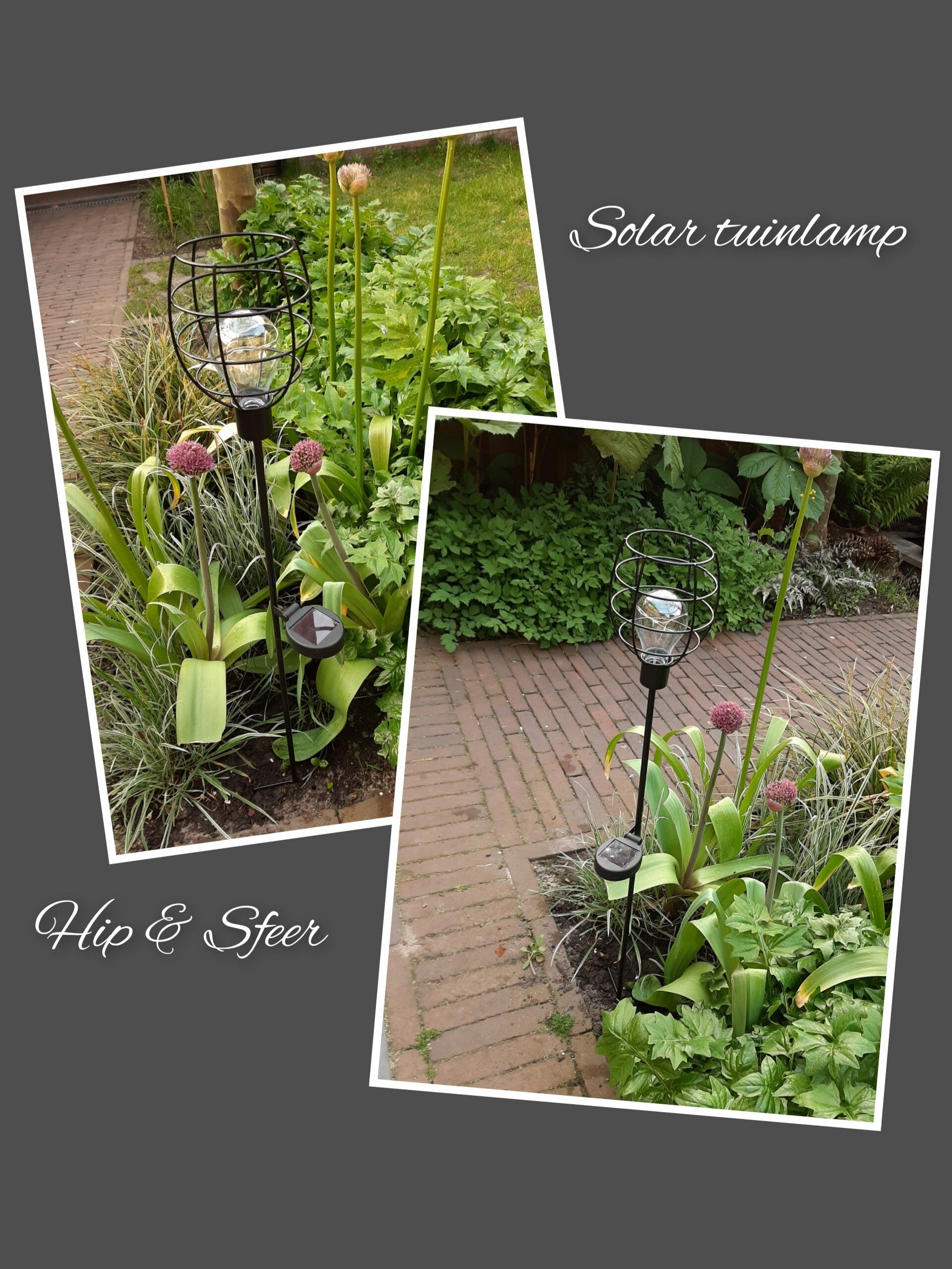 Leuk zwart solar tuinlampje, staand model. Deze kunnen overal in de tuin gestoken worden. De lengte is 91cm.