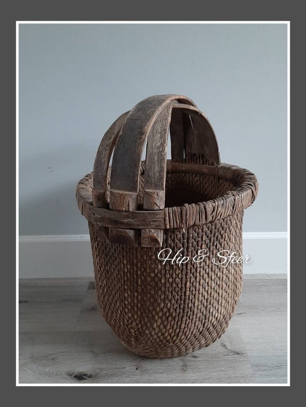 Prachtige grote authentieke Chinese rijstmand met 3 delig hengsel. Deze mand heeft een doorsnee van 40cm en een totale hoogte van 58cm.